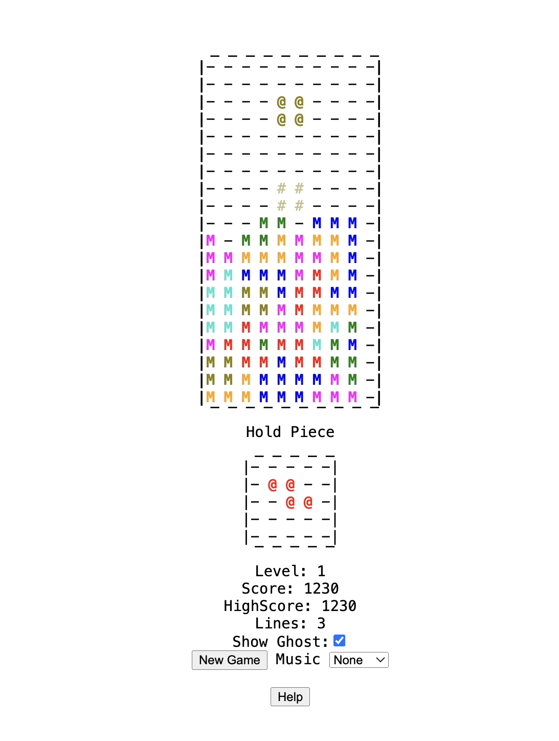 : Another clone of the game Tetris but this time using ASCII.
